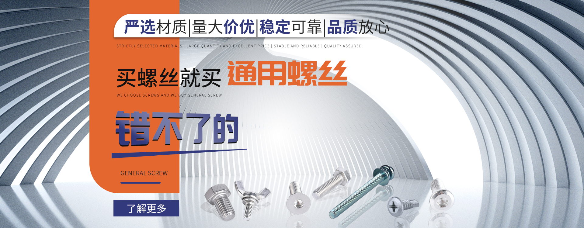 中山市通用螺絲制造有限公司成立于1987年,工廠坐落于廣東四小虎之一的中山市,北連廣州,毗鄰港澳。總占地面積14000m 2,足有兩個足球場。1998年通過德國萊茵TUV ISO9002認證,于2002年通過TUV ISO9001:2000認證。2008年通過ISO 14000認證。我司主營自攻螺絲組合螺絲機械螺絲、防松螺絲等標準和非標準件,既可按客戶的要求提交所需的產品,也可為客戶量身定做所需產品。我司擁有專業的產品檢測隊伍和投影分析儀、金相、硬度計(韋氏和洛氏)、扭矩力測試計等完善的檢測設備,為電子、電器、五金塑料、衛浴、家具、機械、汽配等行業提供符合歐盟質量、環保要求的產品。2006年,我司自主開發的ERP管理系統,使我們的生產和服務效率得到了極大的提高。 經過三十多年地摸爬滾打,依靠眾多新老顧客的支持,通用螺絲逐漸成長為國內知名的緊固件供應商。了解更多 >>
